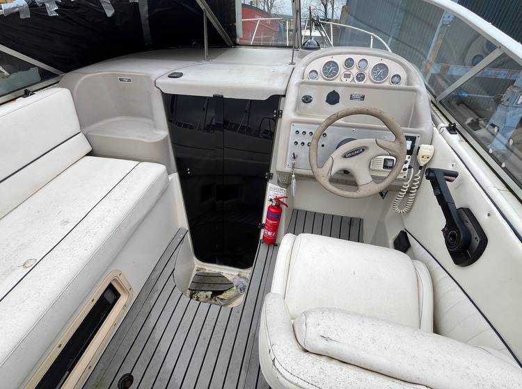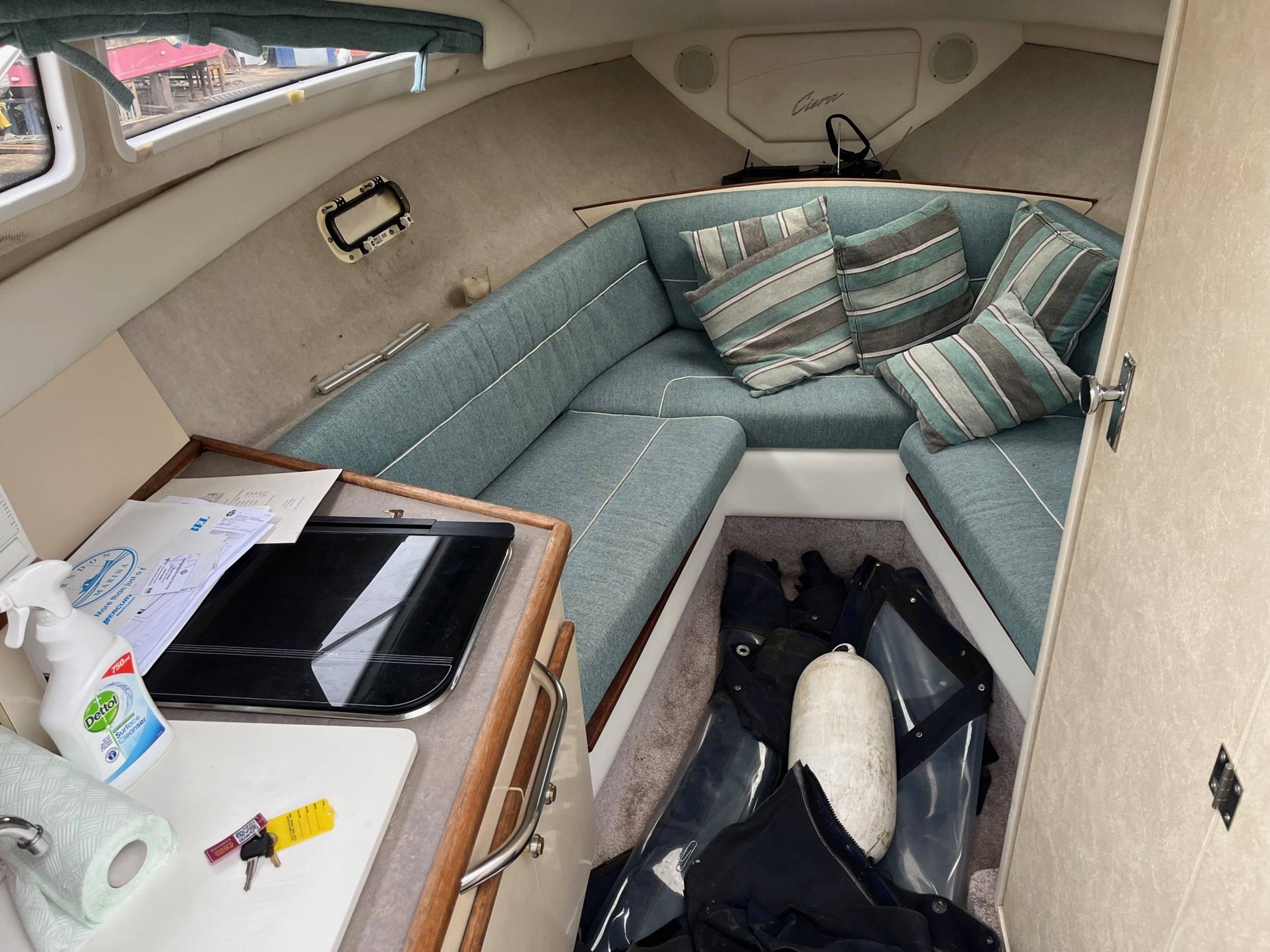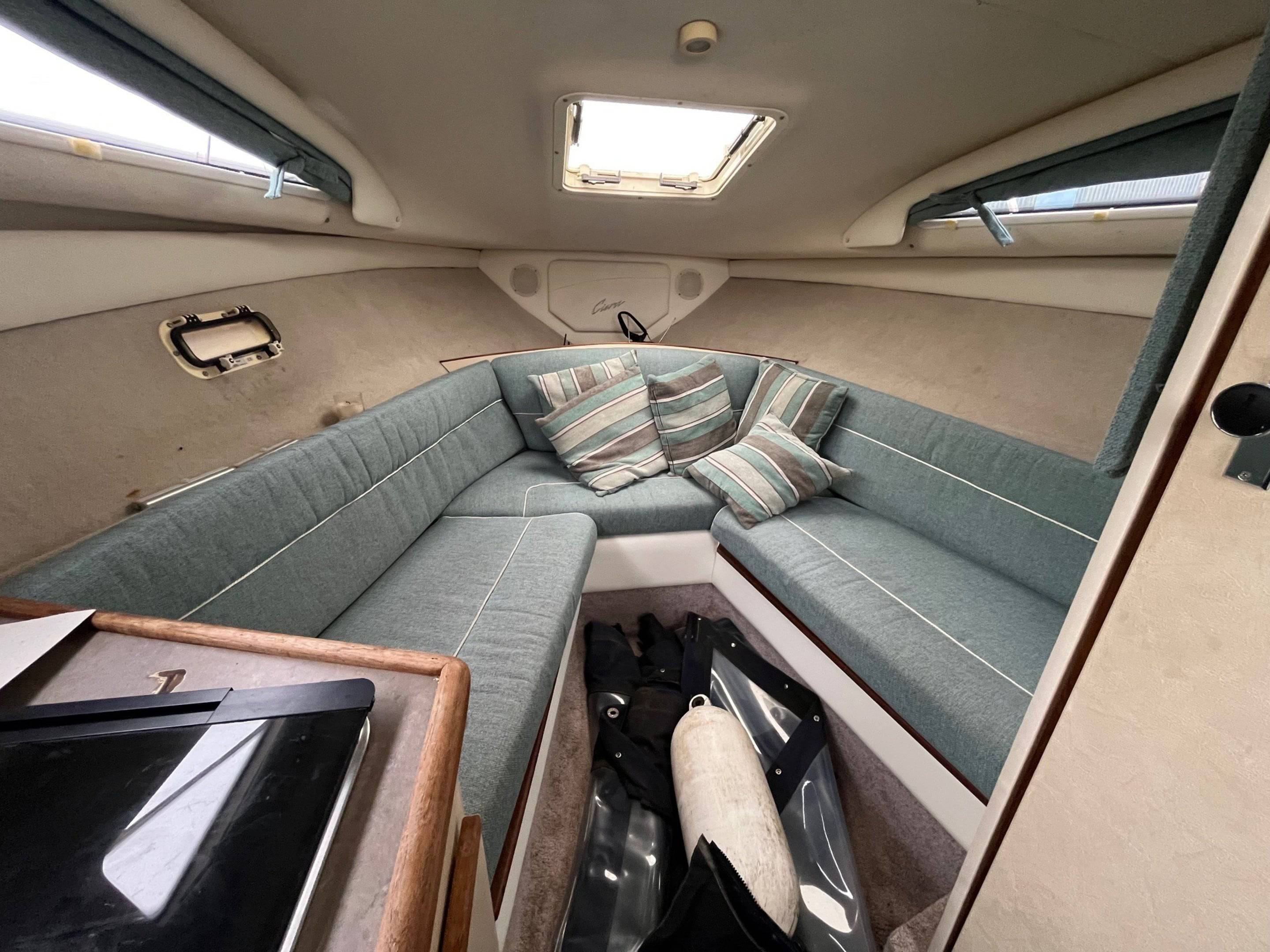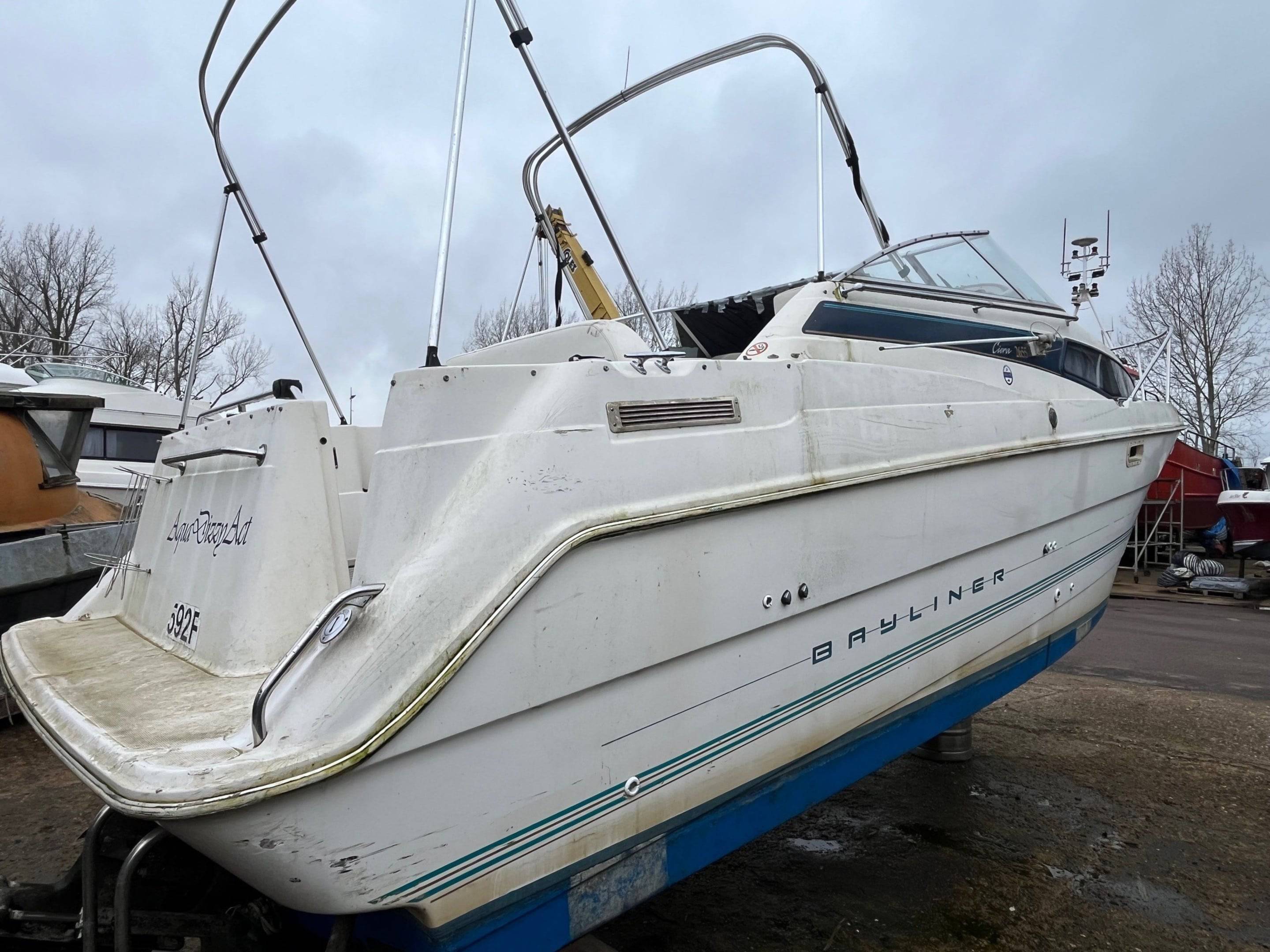 FOR SALE – PROJECT BOAT 1995 Bayliner Ciera 2655 – Mercruiser 5.7L Petrol engine and outdrive. This Bayliner Ciera 2655 is offered as a project vessel at a reduced price. The boat has sustained damage to the front windscreen and will require cosmetic tidying throughout. It is sold strictly as seen, with no warranty implied or given. All viewings are welcome. Please note: the boat must be removed from the marina, as we require the berth space. For more information or to arrange a viewing, contact: Boat Salvage UK 01702 258885 // www.boatsalvage.uk // Darren@boats.co.uk